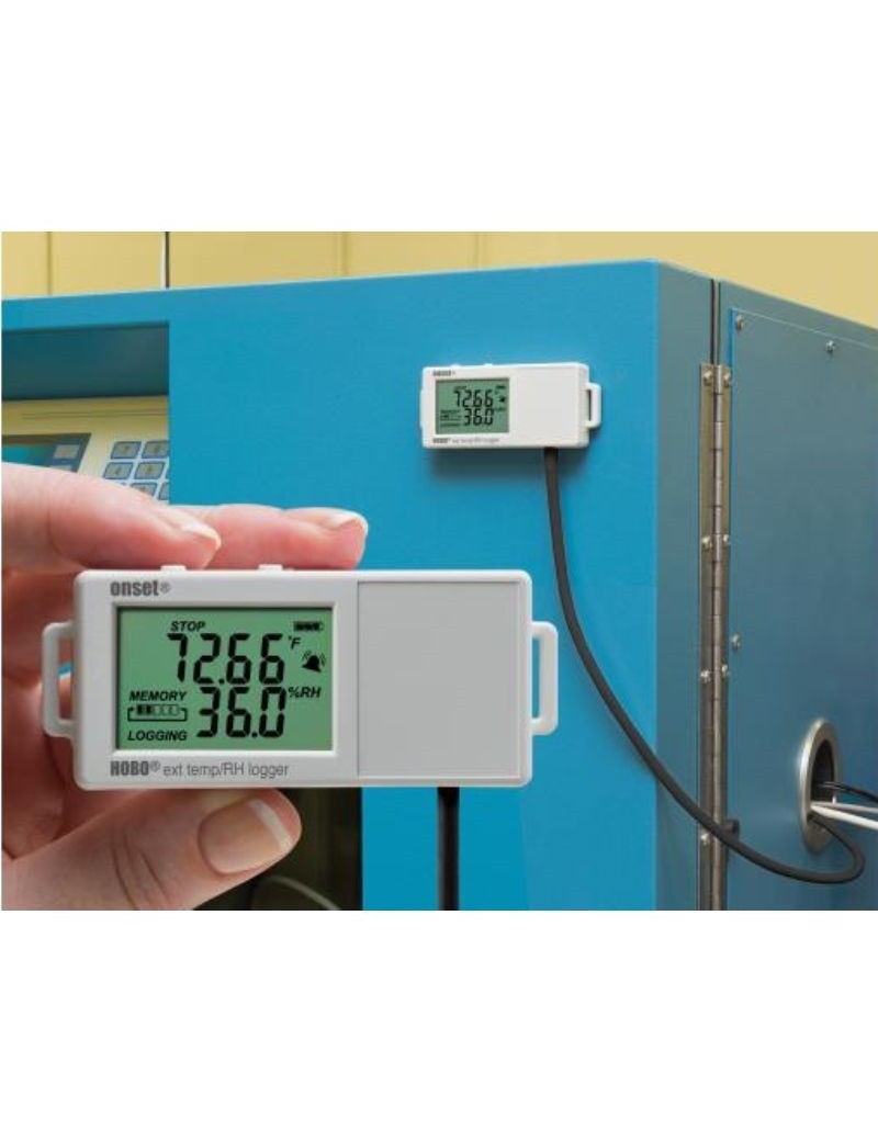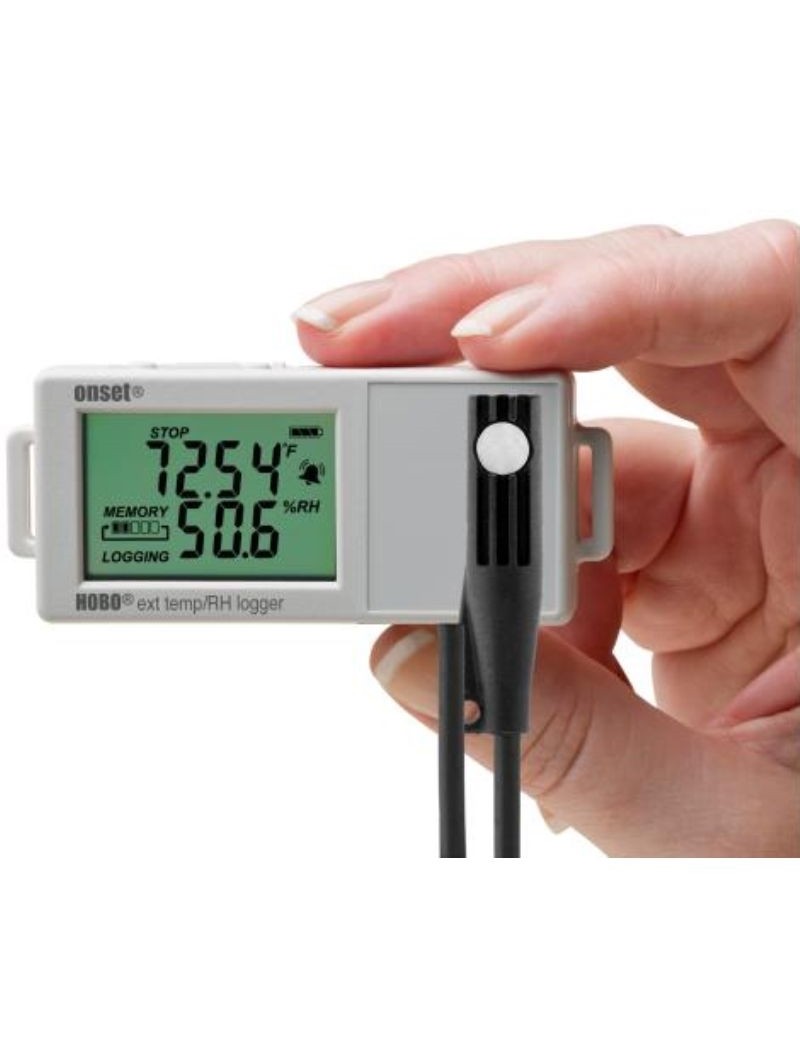 De externe temperatuur / relatieve vochtigheidsgegevensrecorder Hobo UX100-023 bespaart de temperatuur en relatieve vochtigheid in een innerlijke omgeving met zijn externe sensor. Ideaal voor het bewaken van het comfort van inzittenden in kantoorgebouwen, na de voorwaarden voor voedselopslag in magazijnen, registreert u temperatuurtrends in serverruimten en meet vochtniveaus in musea.